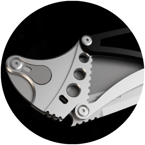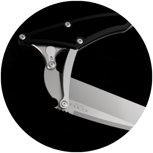 Il cuore del Lockin’ Rebel è il suo meccanismo brevettato di rototraslazione a quattro centri e cinque perni. Questo sistema innovativo permette di avere un coltello con una lama generosa (180mm) in uno spazio contenuto. Grazie a questo meccanismo la lama può essere più lunga del manico, rendendo il coltello meno ingombrante e contribuendo ad un’estetica completamente nuova nel mondo dei coltelli chiudibili. Ma non è solo una questione di dimensioni e design: il meccanismo Lockin’ garantisce una notevole robustezza e un’affidabilità incrementata, grazie ai perni multipli e alle diverse superfici di battuta tra le componenti. Non da ultimo, lo spostamento del baricentro in una posizione più avanzata migliora il feeling ed il controllo durante l’utilizzo.
