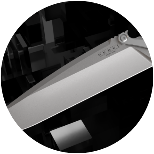 La meccanica “All Steel” rende fluido e praticamente privo di usura lo scorrimento delle parti. Piccole modifiche alla geometria della lama, unite alla scelta dell’acciaio Nitro X7 e al sottoraffreddamento criogenico, portano le capacità di taglio del Rebel a un livello superiore.