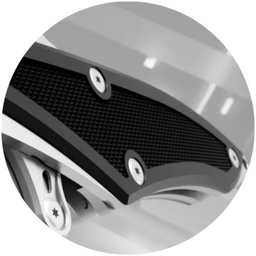 Le guancette in alluminio, oltre a fungere da interfaccia con la mano, sono parte integrante del meccanismo e contribuiscono alla solidità del sistema.